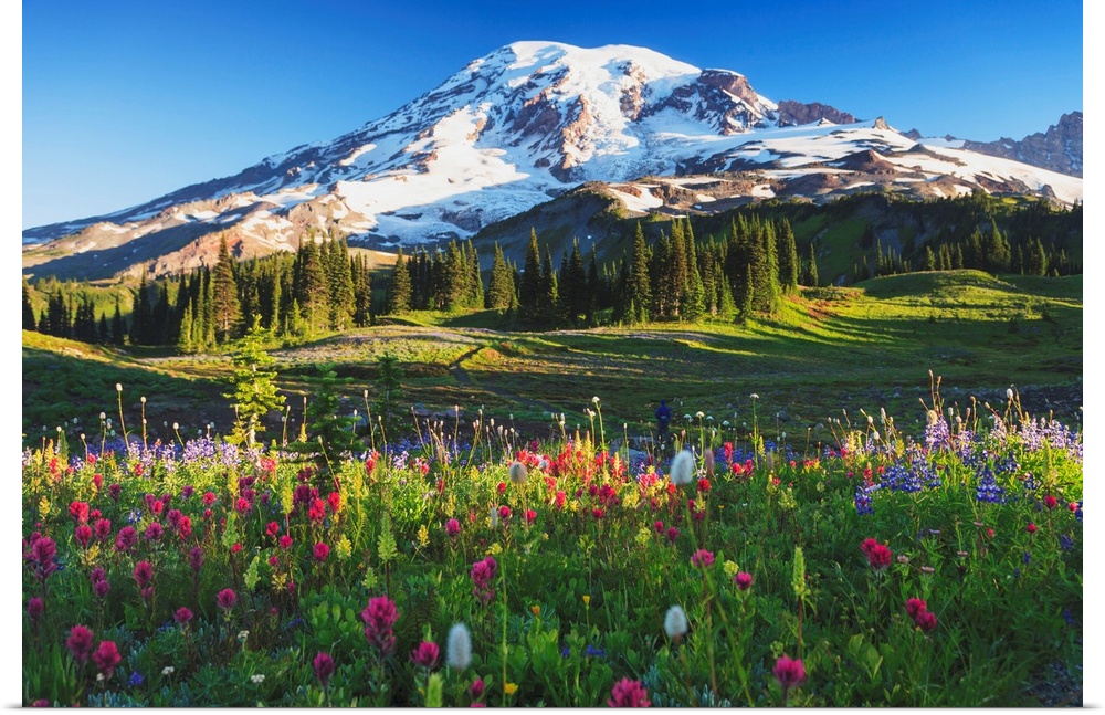<p>Mount Rainier And Wildflowers In A Meadow, Mount Rainier National Park, Washington</p>