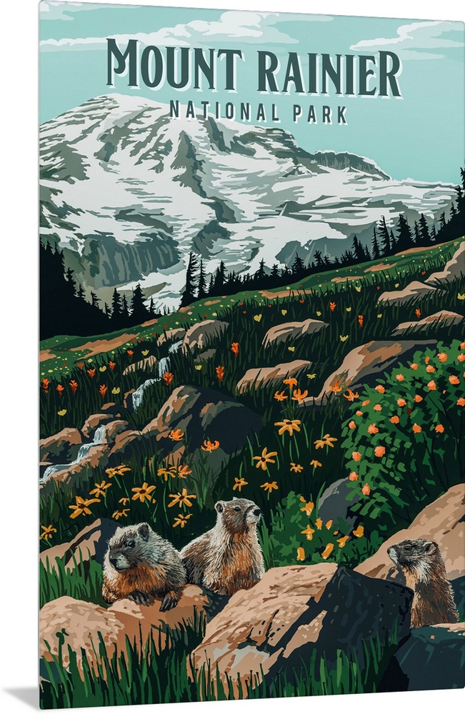 Art Mountains Lantern Press United States Mount Rainier Wildlife