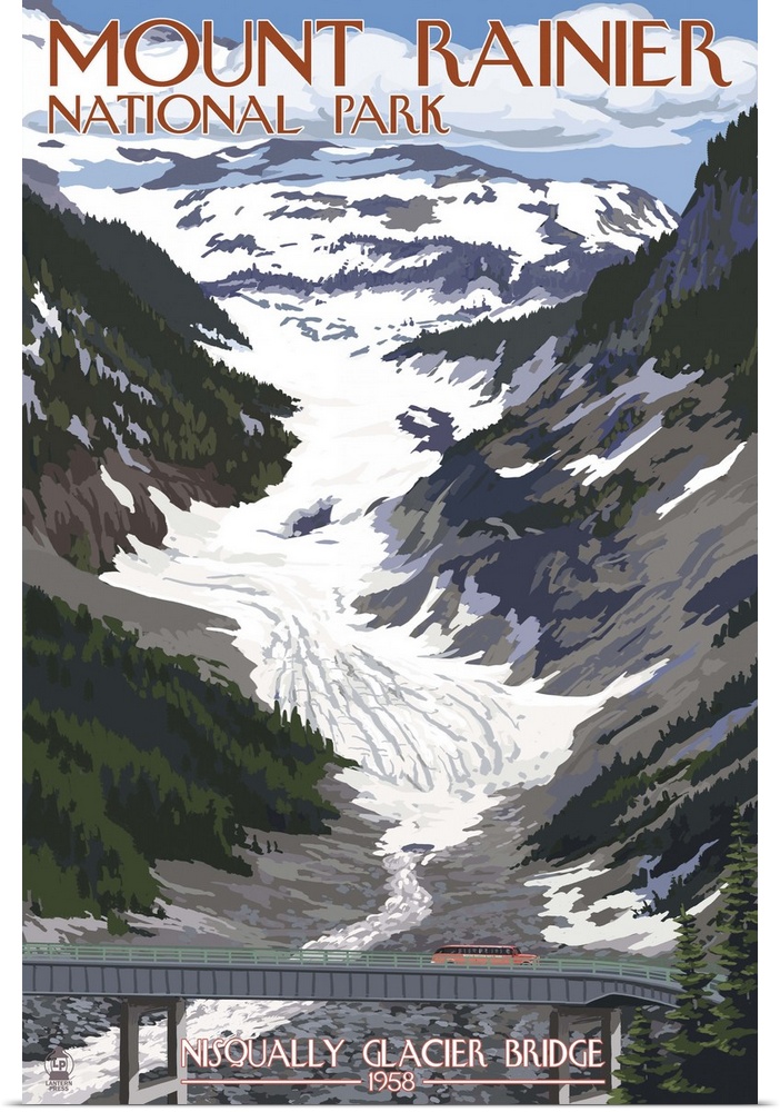 Art Glacier Lantern Press Washington Mount Rainier