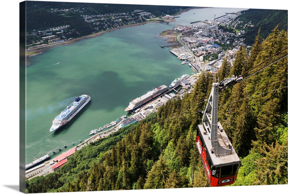 <p>View of the Mount Roberts Tramway above Juneau and cruise ships in Gastineau Channel, Alaska.</p>