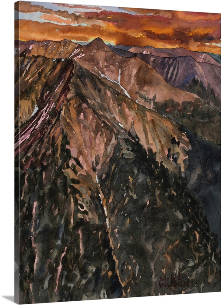 Art Brown Wall Art Contemporary Art Landscapes Mountains Painting Colorado Rocky Mountains The 14ers Collection Watercolor Mike Wilson