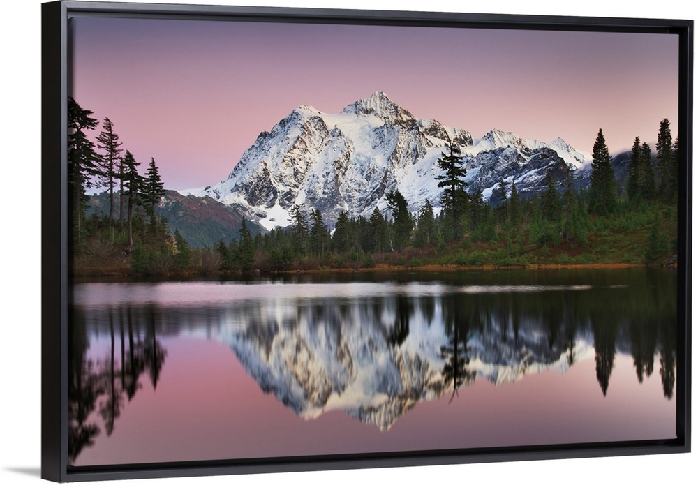 <p>Photograph of alpenglow over Mount Shuksan (9131 feet, 2783 meters) seen from Picture Lake, Heather Meadows Recreation Area, North Cascades Washington</p>