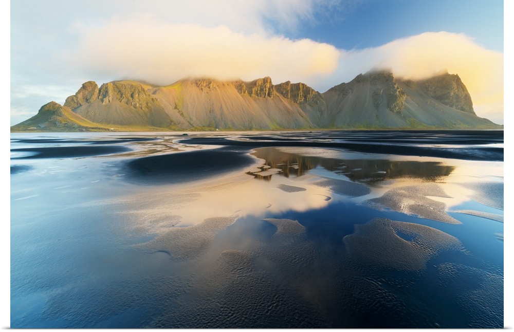 <p>Mount Vestrahorn shrouded in clouds at sunrise, Stokksnes, Iceland, Polar Regions</p>