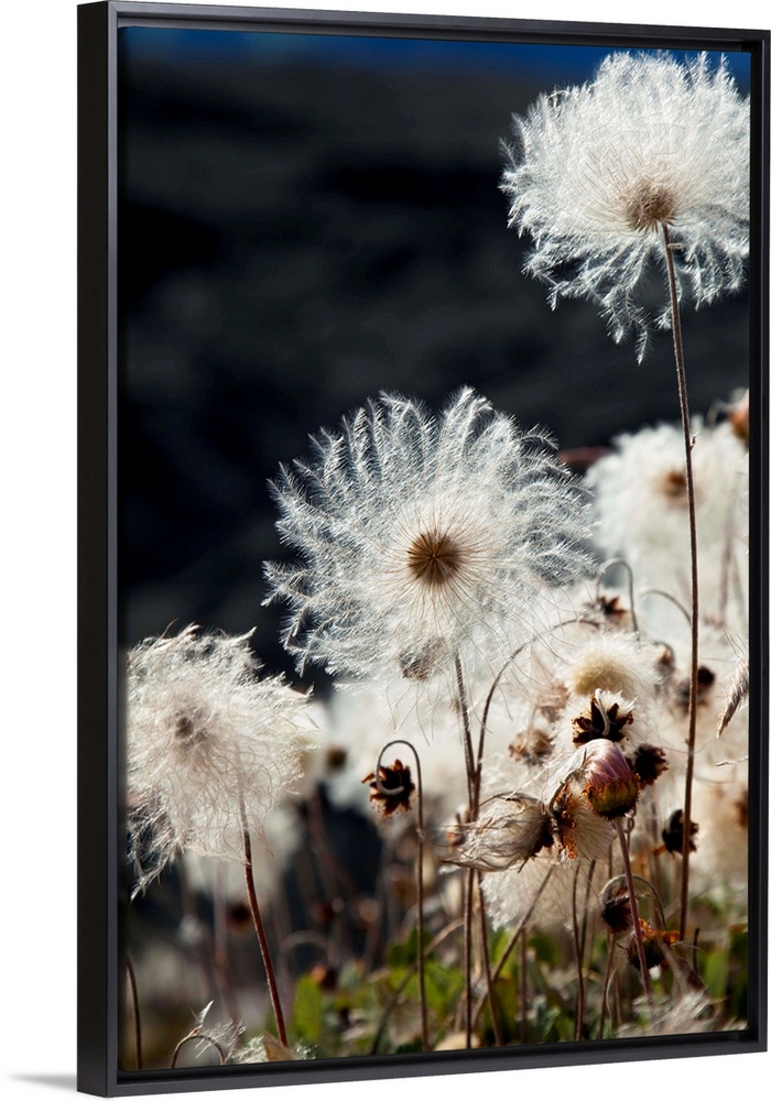 <p>Close up view of mountain avens that have gone to seed on the moraine of Root and Kennecott Glaciers, Wrangell St. Elias National Park & Preserve, Southcentral Alaska, Summer</p>