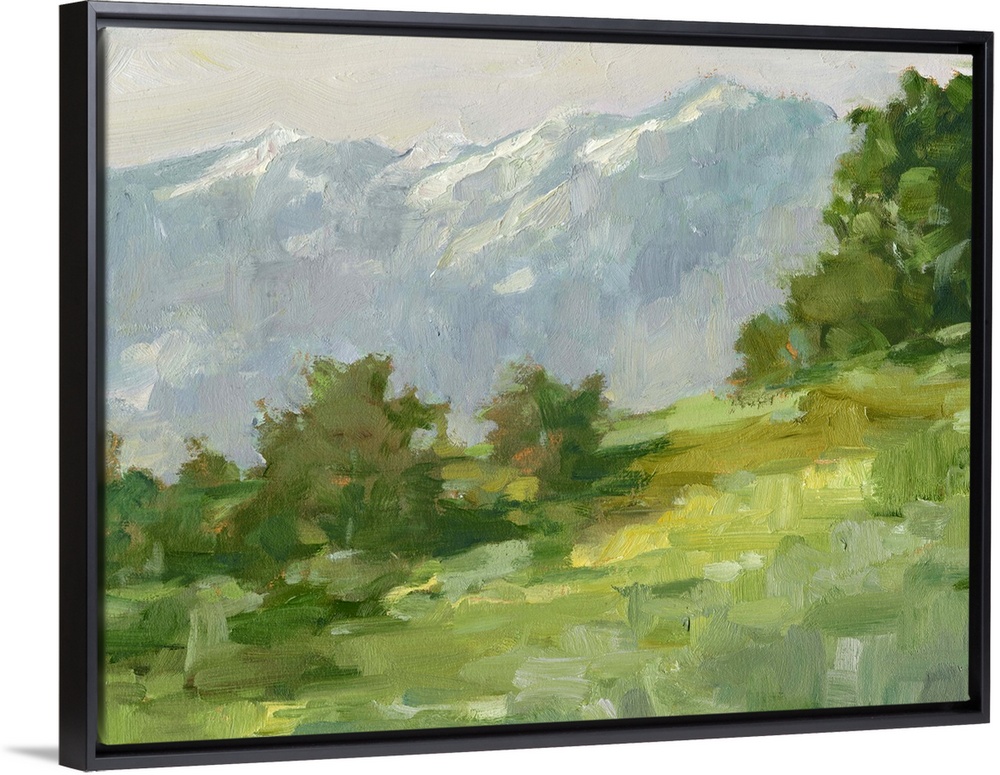 <p>Contemporary landscape painting of a rural mountain meadow.</p>
