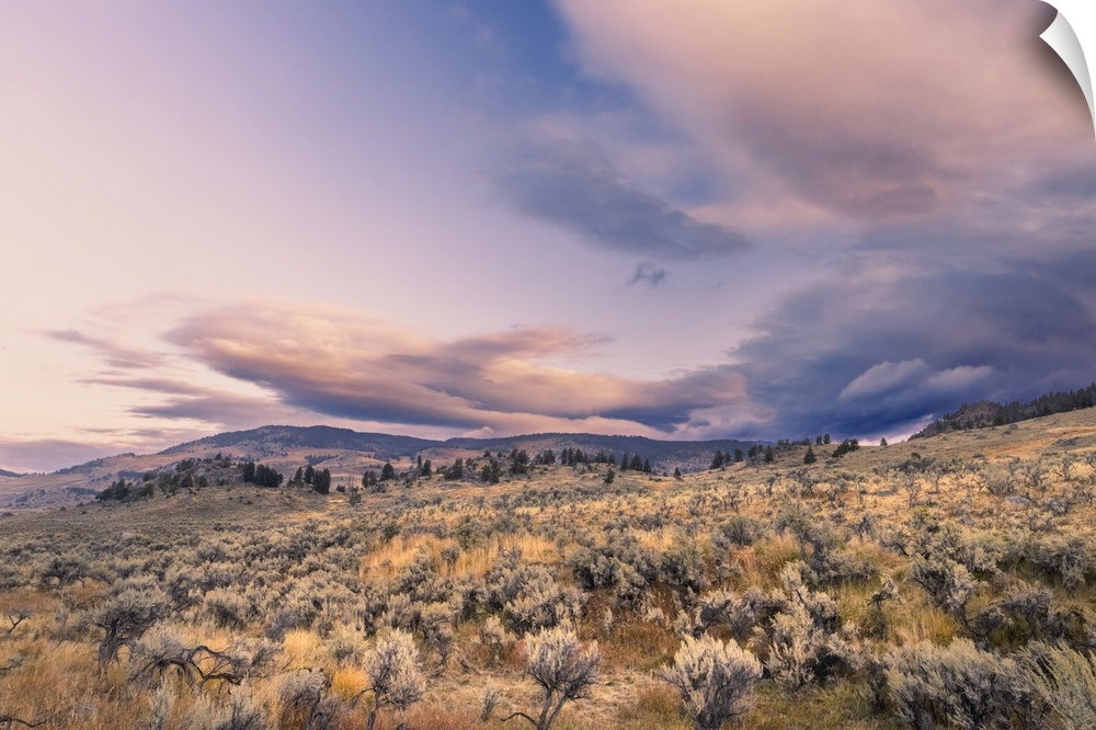 <p>Mountain big sagebrush at sunrise, Lamar Valley, Yellowstone National Park, Wyoming. United States, Wyoming.</p>