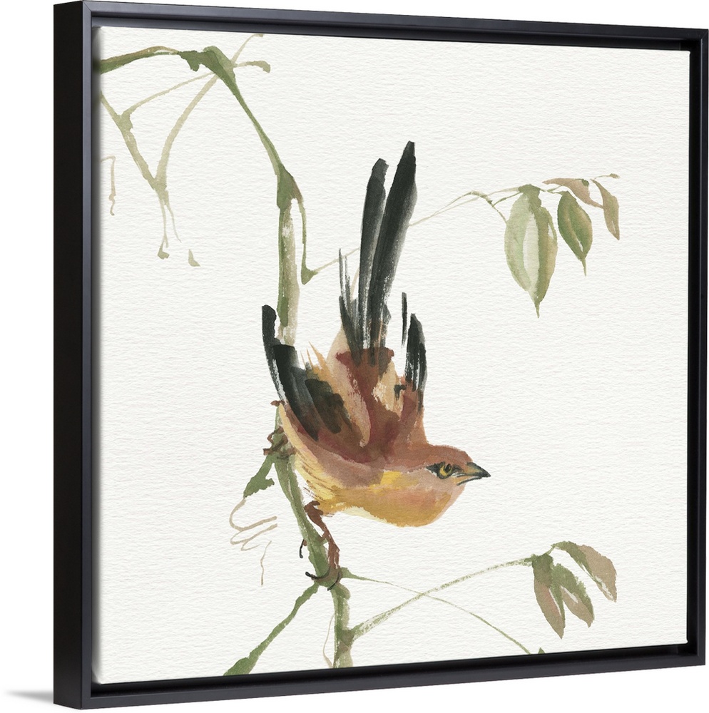 <p>Contemporary painting of a bird perched on a drooping branch.</p>