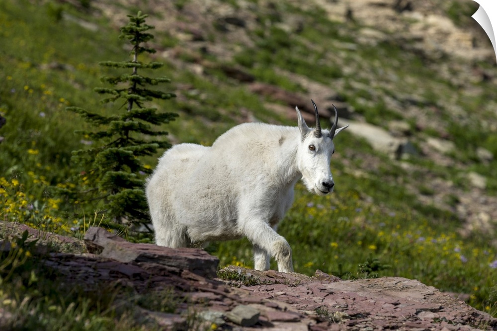 <p>Mountain Goat on the Hillside. Glacier National Park. Montana. USA.</p>
