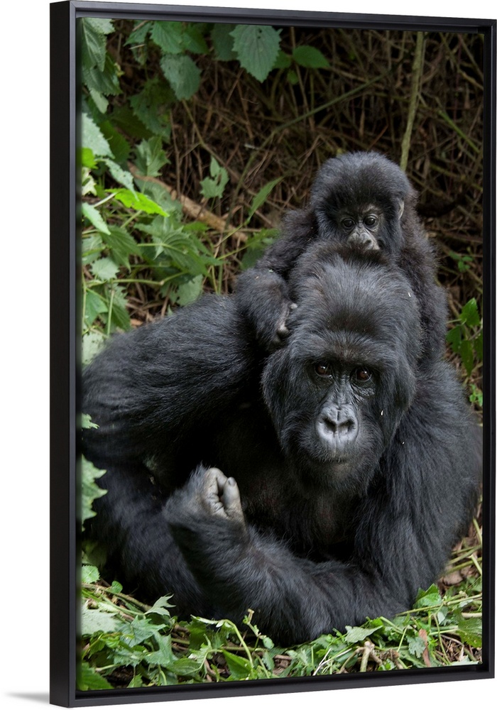 <p>Mountain Gorilla.Gorilla gorilla beringei.Mother and 1.5 year old baby.Parc National des Volcans, Rwanda.*Endangered species</p>