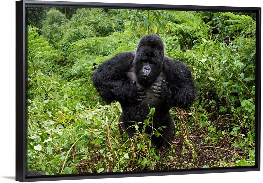 <p>Mountain Gorilla.Gorilla gorilla beringei.Silverback beating chest.Parc National des Volcans, Rwanda.*Endangered species</p>