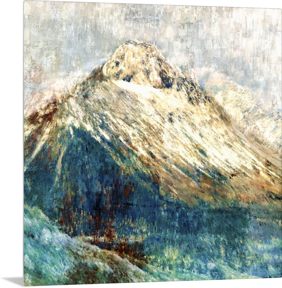 <p>Crystal blue mountain with a white top against a textured silver background.</p>