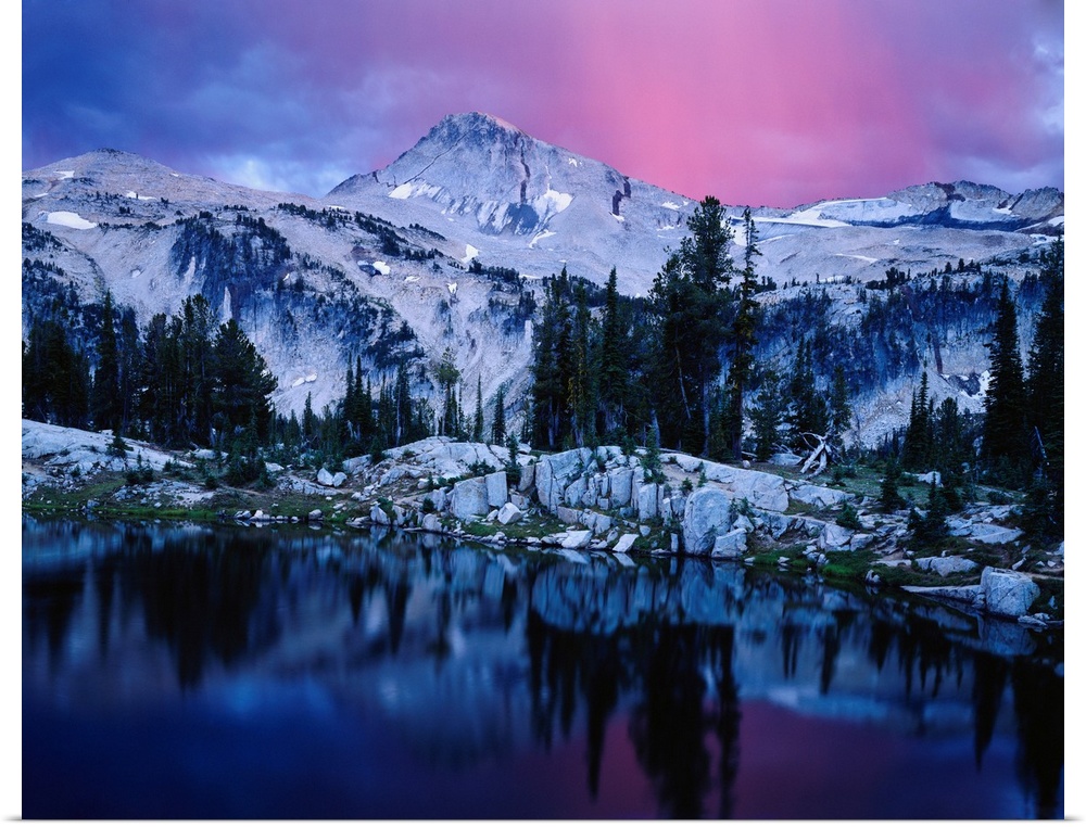 <p>Mountain lake in a rugged wilderness at twilight, Wallowa national forest, Oregon, united states of America.</p>