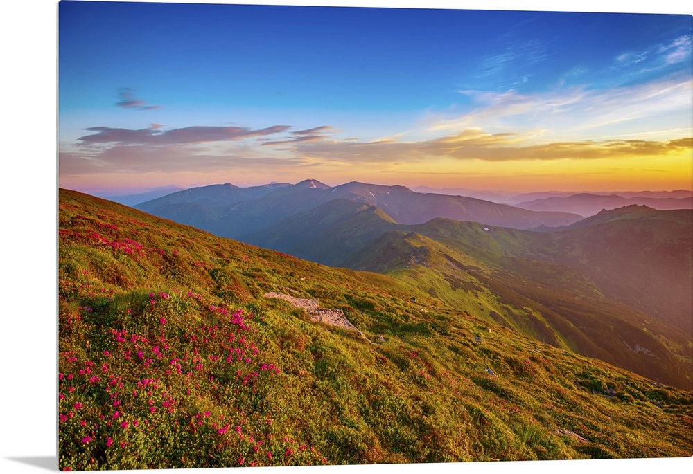 <p>Mountain Landscape With Colorful Vivid Sunrise On The Blue Sky</p>