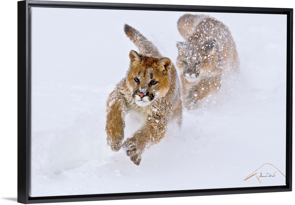 <p>Young Mountain Lion (Felis concolor) cubs chasing in play near Bozeman Montana, USA.</p>