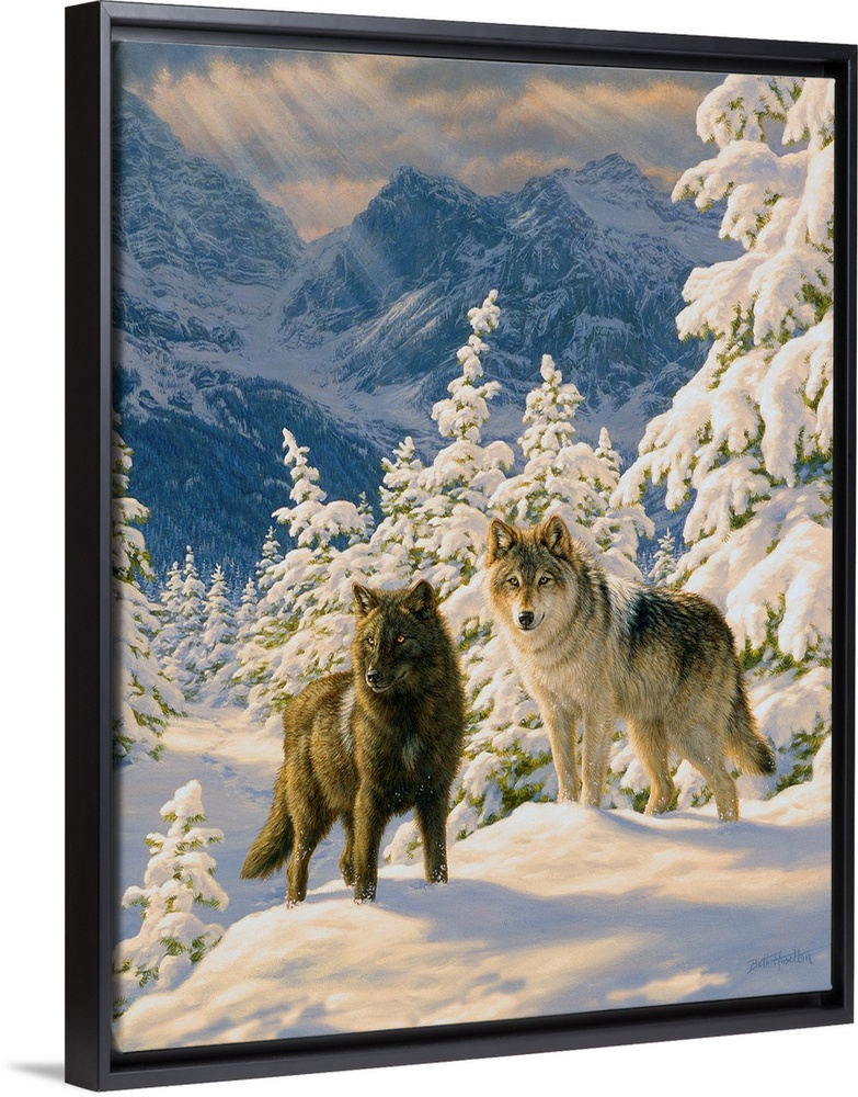 Art Contemporary Art Wildlife Winter Landscapes Snowscapes Painting Wildlife Wolf