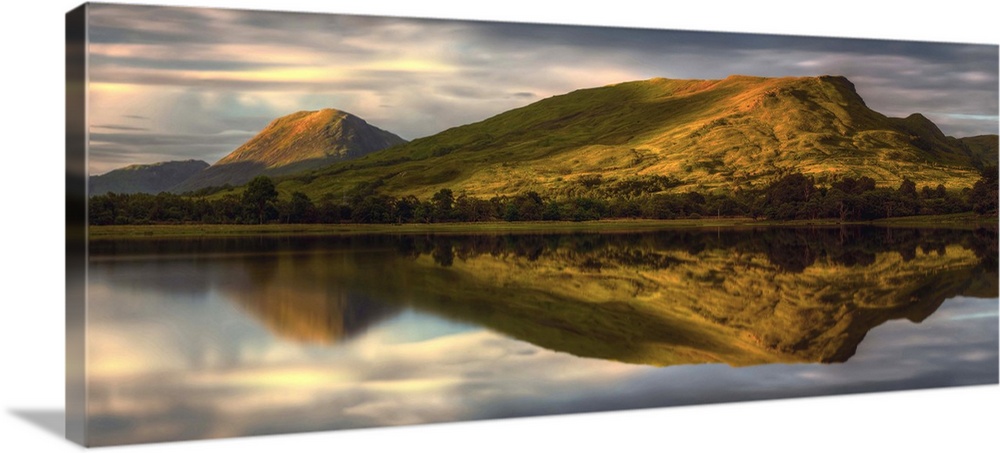 <p>Mountain reflection in Loch Awe at sunset, Argyll and Bute, Scottish Highlands, Scotland.</p>