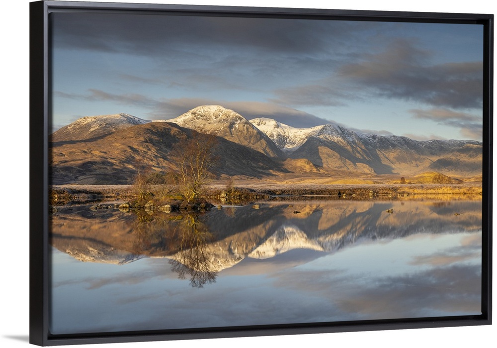 <p>Mountain reflections in Lochan na h-achlaise on Rannoch Moor in the Scottish Highlands, Scotland. Spring (March) 2024.</p>