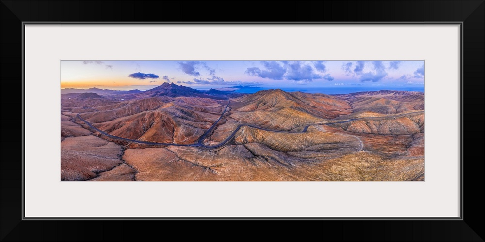 <p>Mountain road crossing the volcanic landscape near Sicasumbre astronomical viewpoint, Fuerteventura, Canary Islands, Spain, Atlantic, Europe</p>