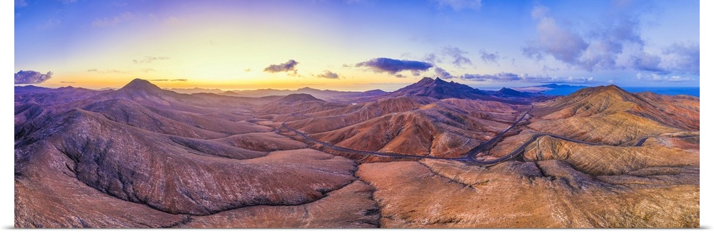 <p>Mountain road crossing the volcanic landscape near Sicasumbre astronomical viewpoint, Fuerteventura, Canary Islands, Spain, Atlantic, Europe</p>