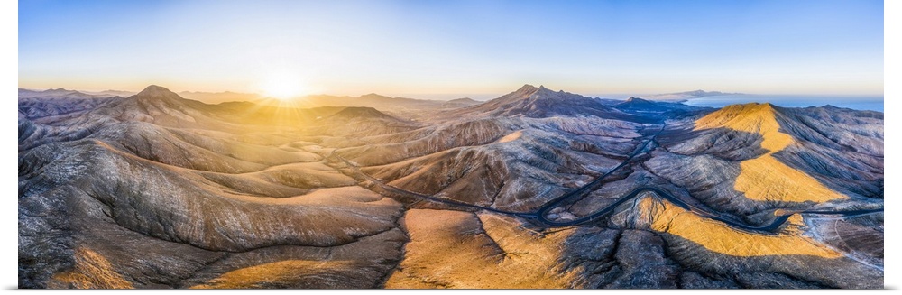 <p>Mountain road crossing the volcanic landscape near Sicasumbre astronomical viewpoint, Fuerteventura, Canary Islands, Spain, Atlantic, Europe</p>