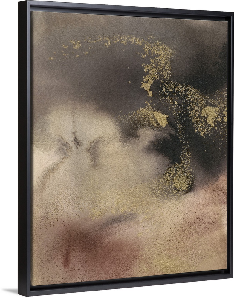 <p>Large abstract painting created with shades of brown and metallic gold accents.</p>