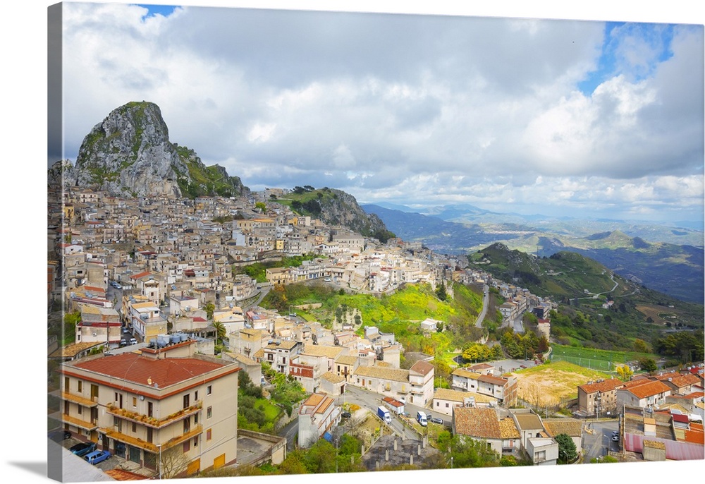 <p>Mountain village of Caltabellotta, high angle view, Caltabellotta, Agrigento district, Sicily, Italy, Mediterranean, Europe</p>