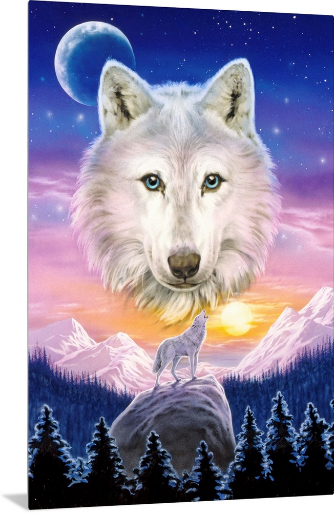 Art Blue Wall Art Fantasy Wildlife Robin Koni Painting Wildlife Wolf