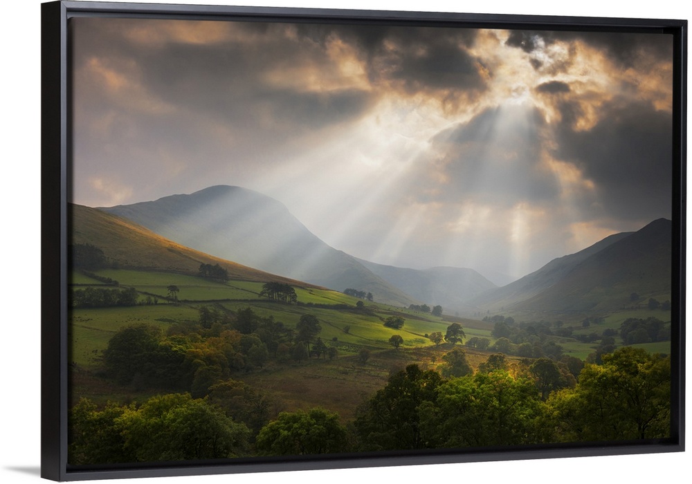 <p>Mountains and Valley at Sunset after Rain Storm in Early Autumn, Derwent Fells, Lake District, Cumbria, England</p>