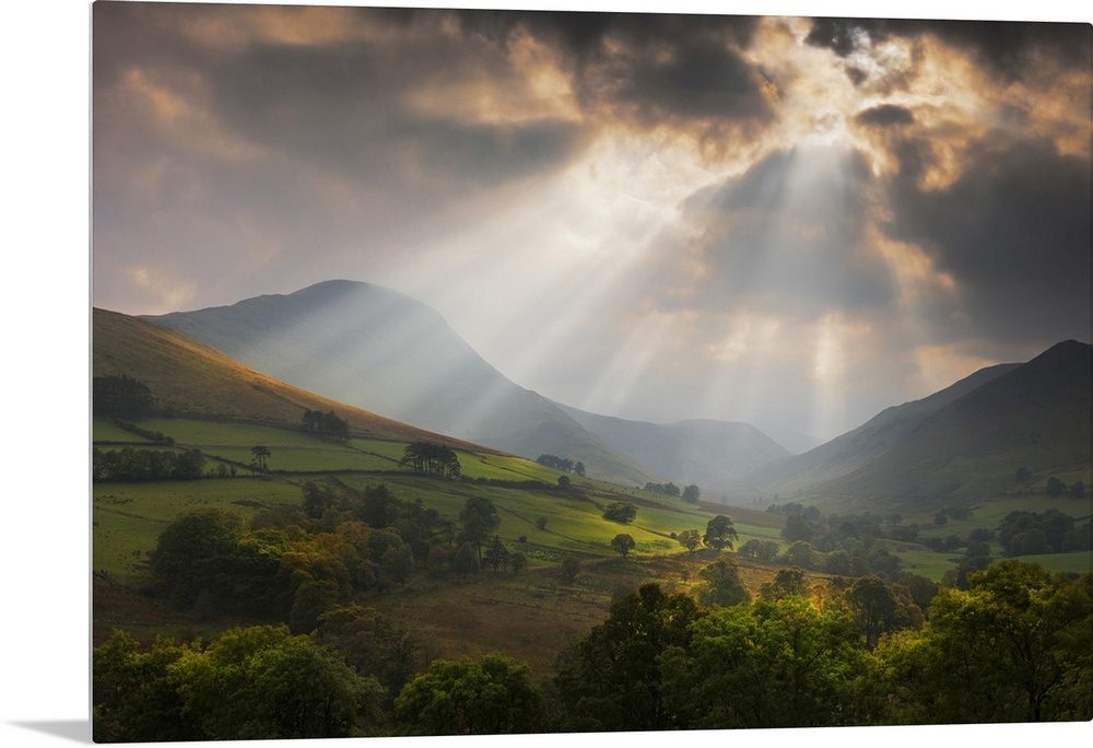 <p>Mountains and Valley at Sunset after Rain Storm in Early Autumn, Derwent Fells, Lake District, Cumbria, England</p>