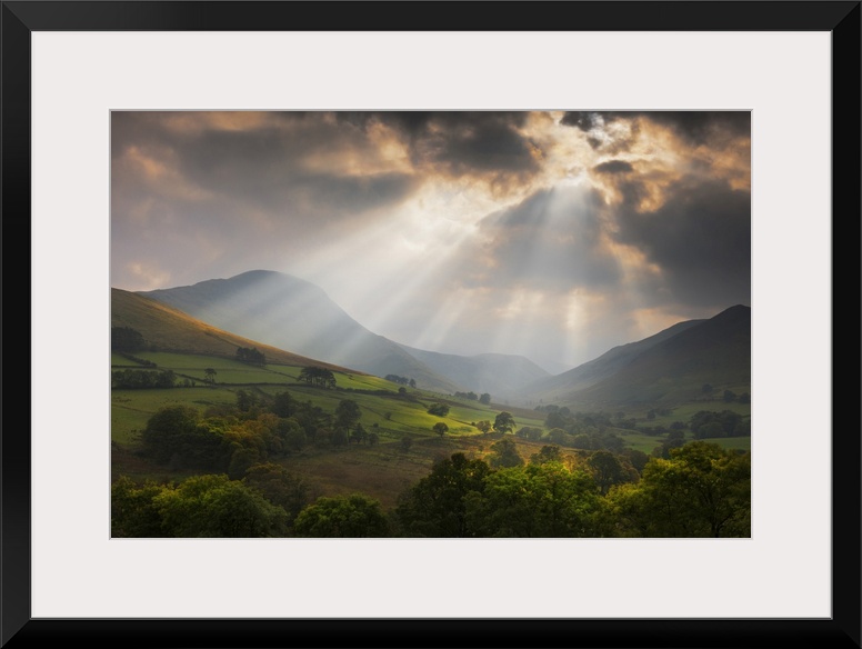 <p>Mountains and Valley at Sunset after Rain Storm in Early Autumn, Derwent Fells, Lake District, Cumbria, England</p>