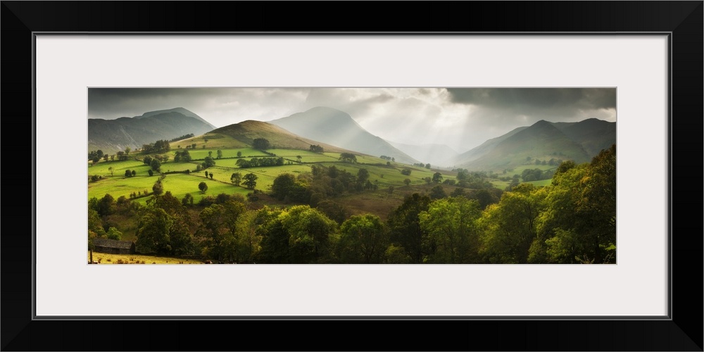 <p>Mountains and Valley at Sunset after Rain Storm in Early Autumn, Derwent Fells, Lake District, Cumbria, England</p>