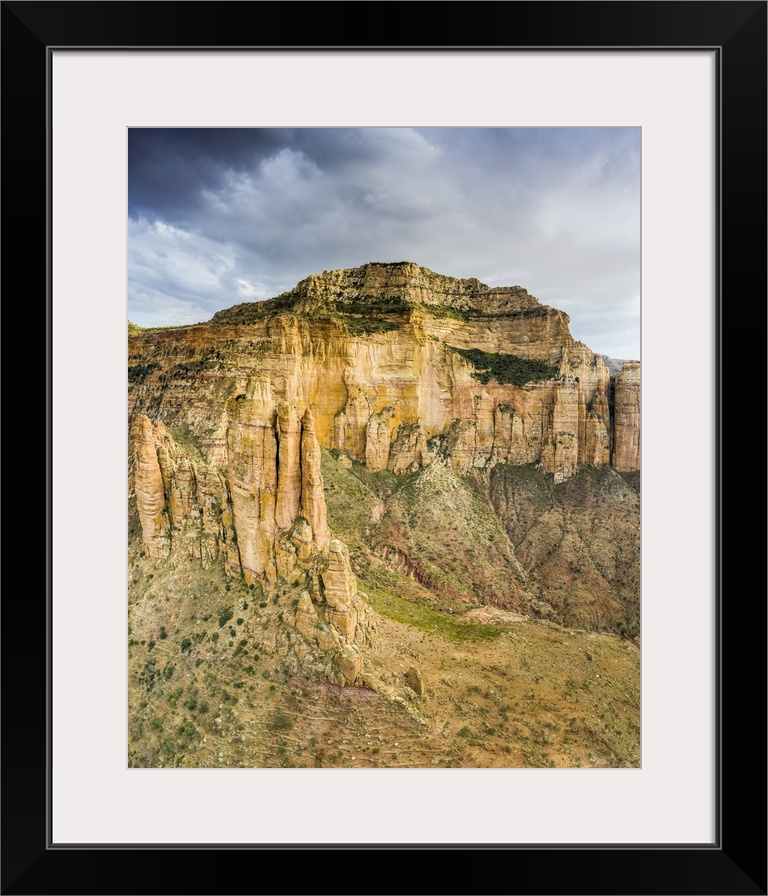 <p>Aerial view of mountains housing Abuna Yemata Guh church carved in rocks, Gheralta Mountains, Tigray Region, Ethiopia, Africa</p>