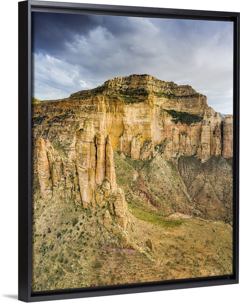 <p>Aerial view of mountains housing Abuna Yemata Guh church carved in rocks, Gheralta Mountains, Tigray Region, Ethiopia, Africa</p>