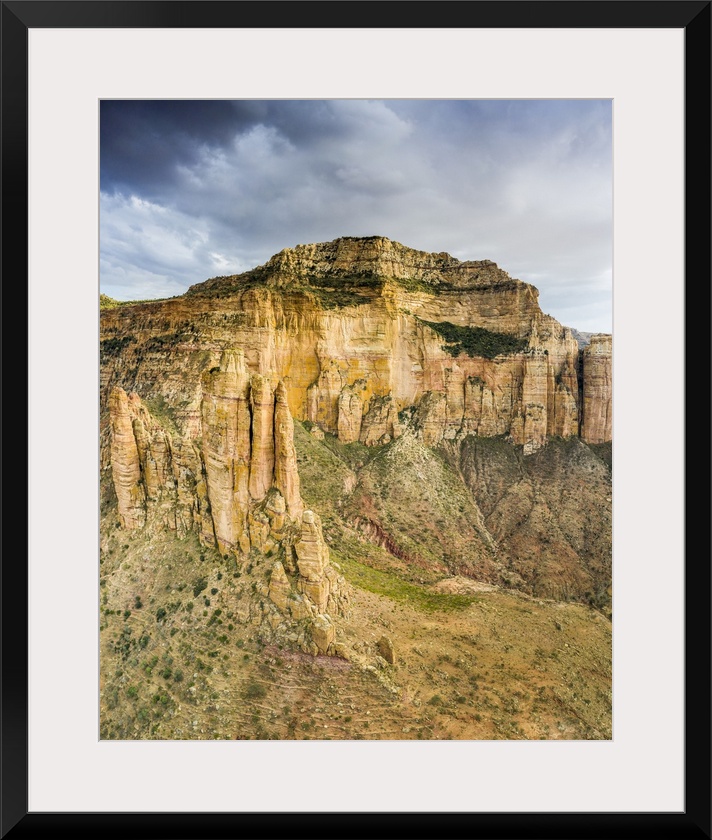 <p>Aerial view of mountains housing Abuna Yemata Guh church carved in rocks, Gheralta Mountains, Tigray Region, Ethiopia, Africa</p>