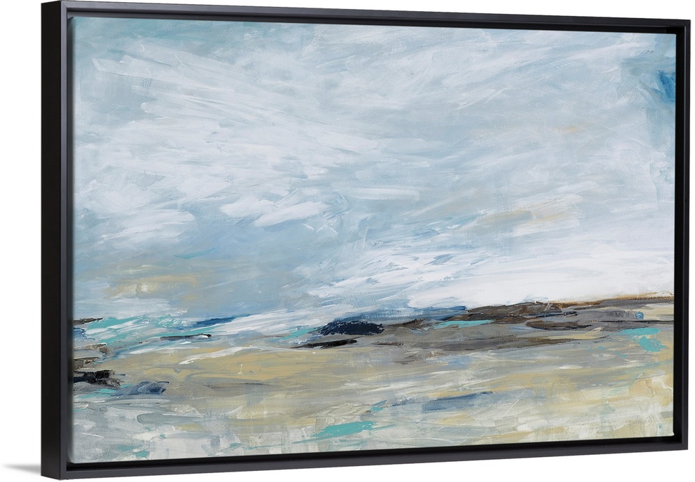 <p>Abstract landscape done in engaged brush strokes in colors of white, blue and brown.</p>