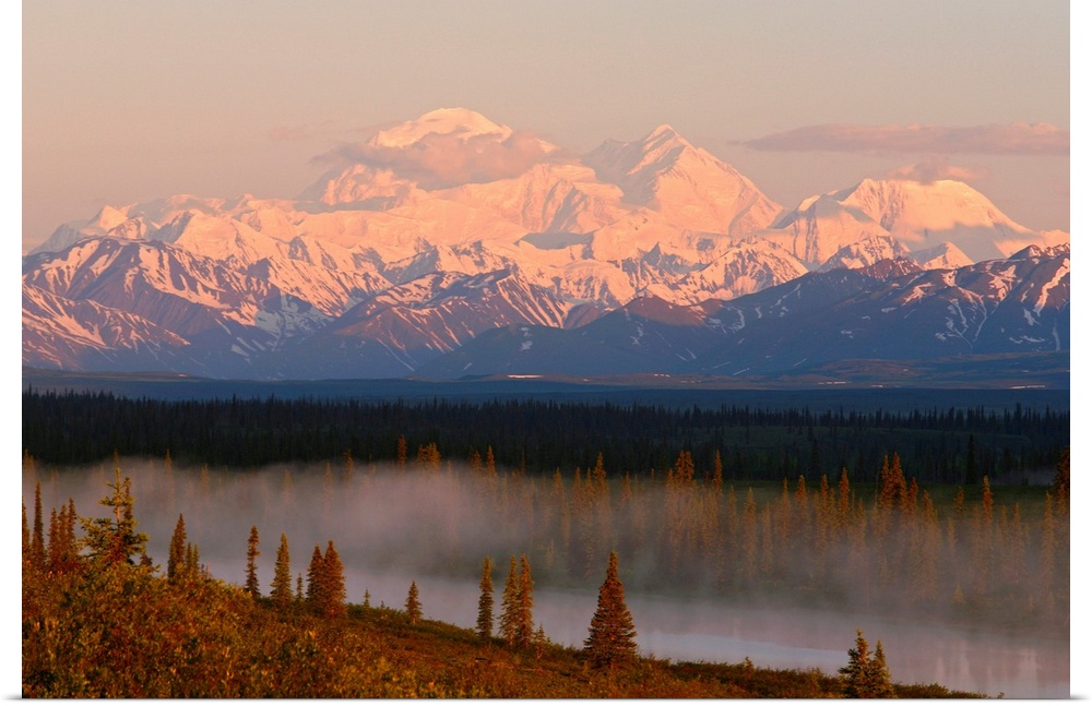 Four Seasons Lake Mountains Sunrise Photography United States Alaska Denali National Park