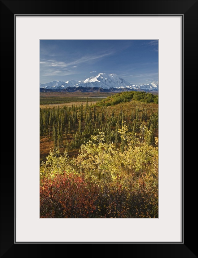 <p>Scenic Of Fall Tundra And Yellow Aspen Trees With Mt. Mckinley In The Background Near Wonder Lake Campground, Denali National Park, Alaska</p>