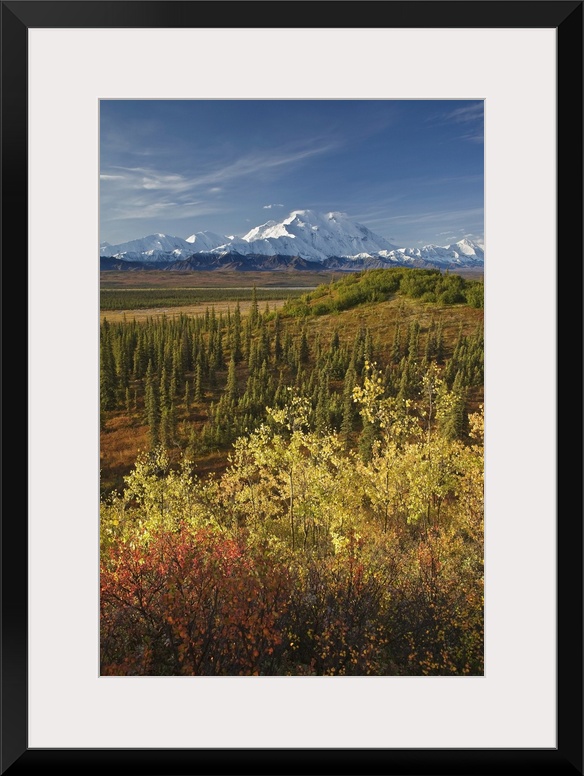 <p>Scenic Of Fall Tundra And Yellow Aspen Trees With Mt. Mckinley In The Background Near Wonder Lake Campground, Denali National Park, Alaska</p>