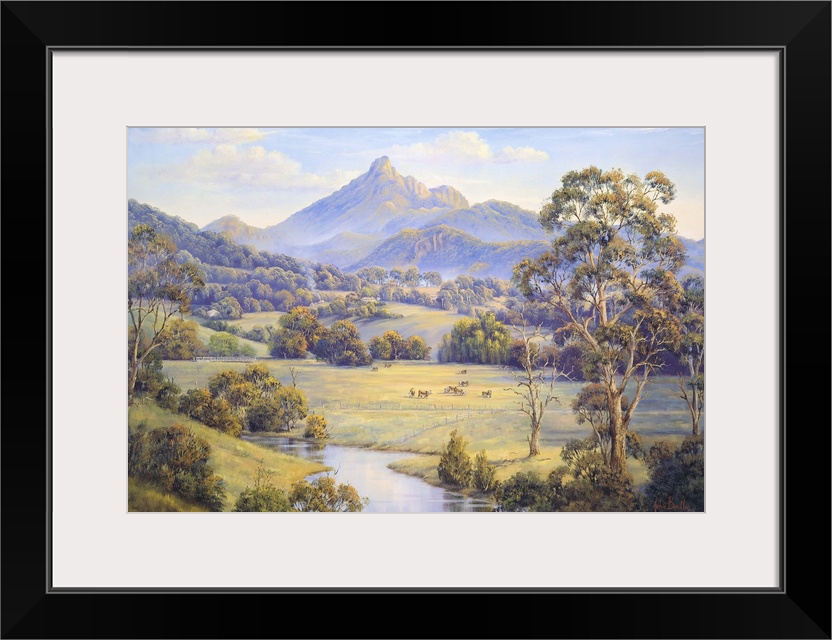 <p>Contemporary painting of a mountainous valley.</p>