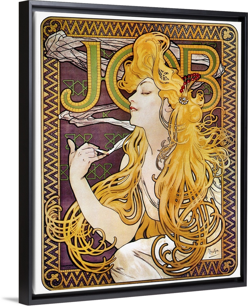<p>French lithograph advertising poster, c1897, by Alphonse Mucha for Job cigarette papers.</p>