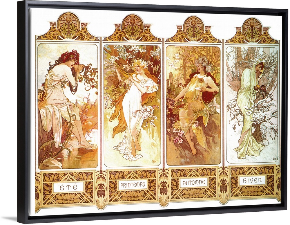 <p>'The Four Seasons' (from left: summer, spring, autumn, winter). Lithograph poster, c1897 by Alphonse Mucha.</p>