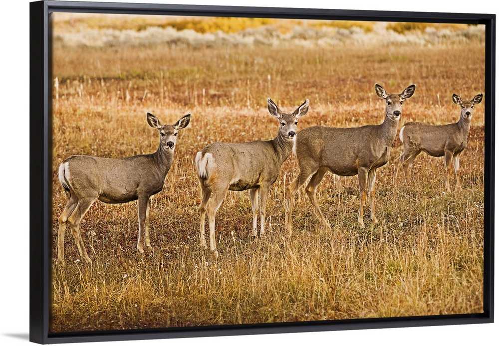 <p>Mule deer (Odocoileus hemionus) One on left with a strange look on face</p>