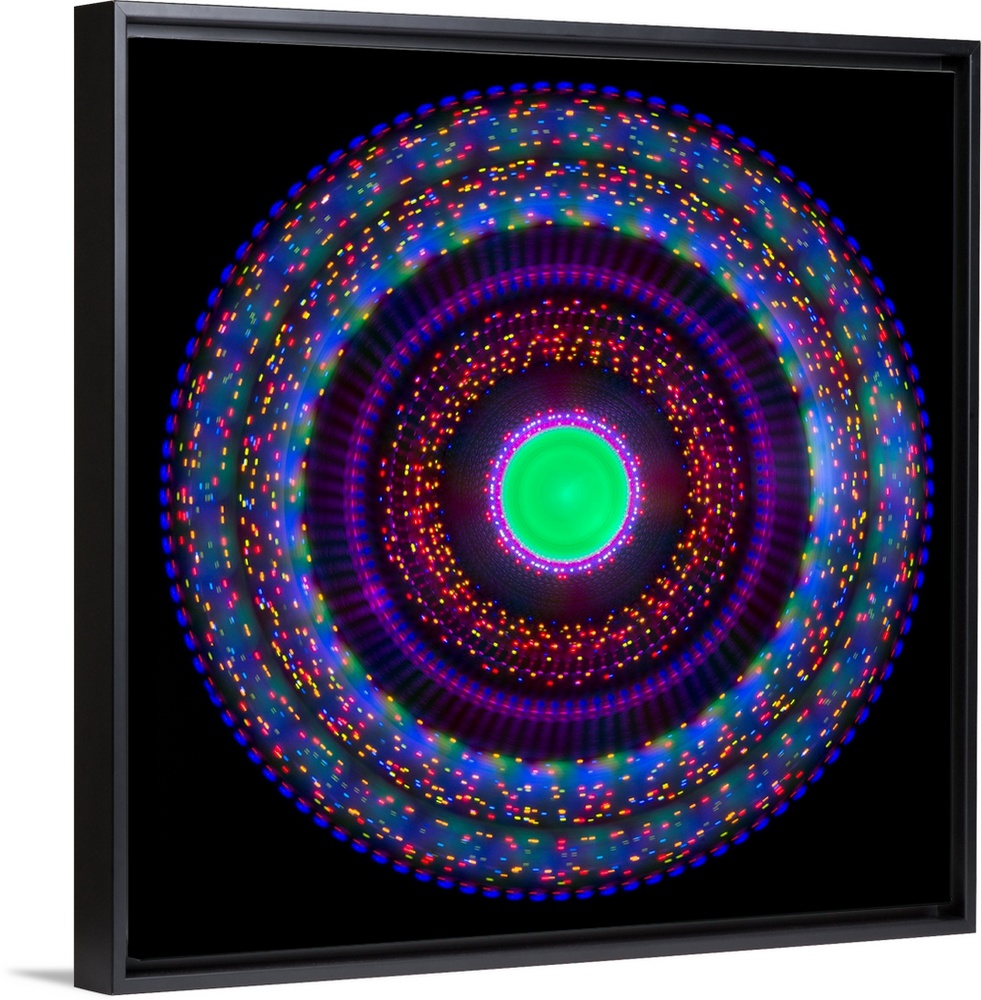 <p>Multicoloured trails of spinning lights.</p>