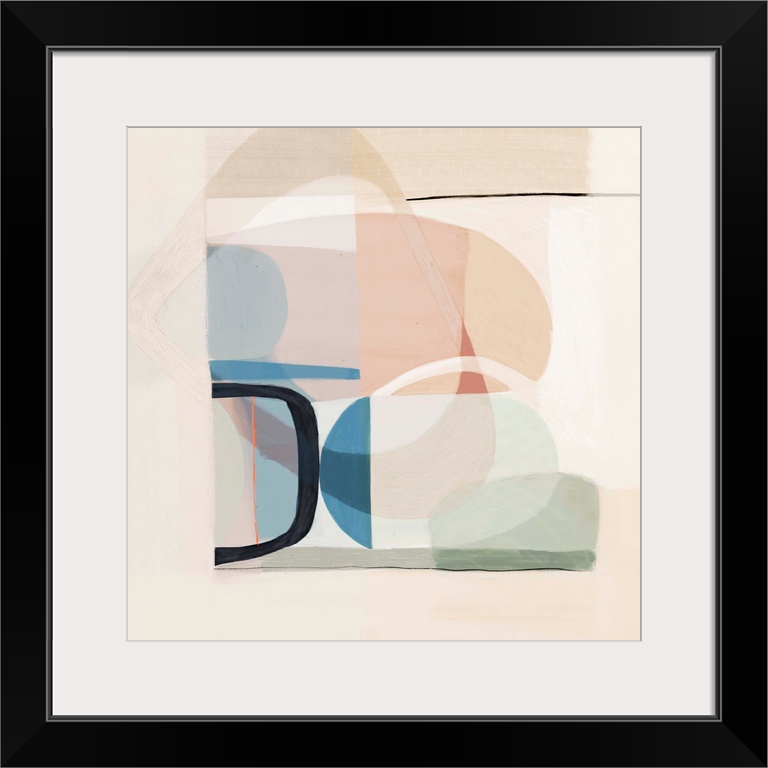 <p>Contemporary artwork of mod shapes in pastel colors on a neutral background.</p>