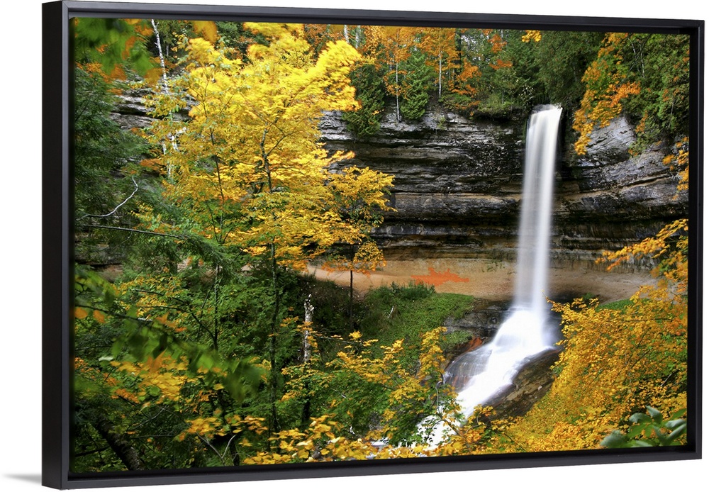 <p>Munising Falls on a cloudy morning. The colors had not quite peaked, so I "helped" nature by selectively decreasing green and adding red to a few trees which were somewhat still greenish yellow.</p>