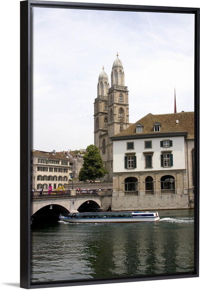 <p>Tour boat passes beneath Munster Bridge crossing the Limmat River in Zurich, Switzerland with towers of Grossmunster church in background...switzerland, swiss, europe, european, travel, tourism, swiss alps, alps, alpine, zurich, limmat river, grossmunster, church, boat, tour boat, munster bridge</p>