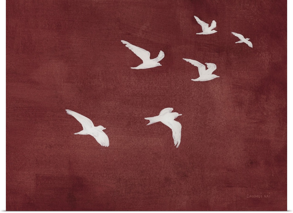 Art Contemporary Art Danhui Nai Painting Red Wall Art Burgundy Wildlife Bird