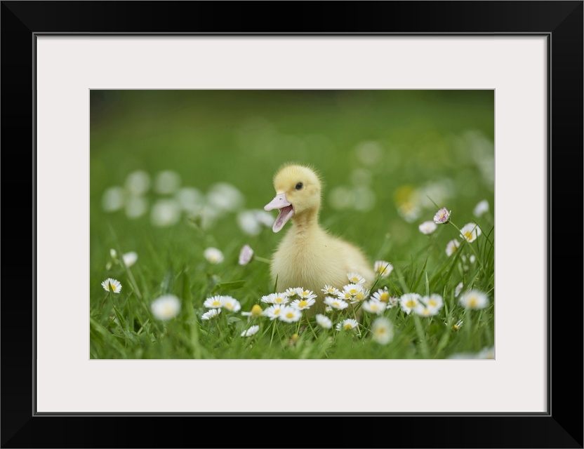 <p>Muscovy Duckling (Cairina moschata) on Meadow in Spring, Upper Palatinate, Bavaria, Germany</p>