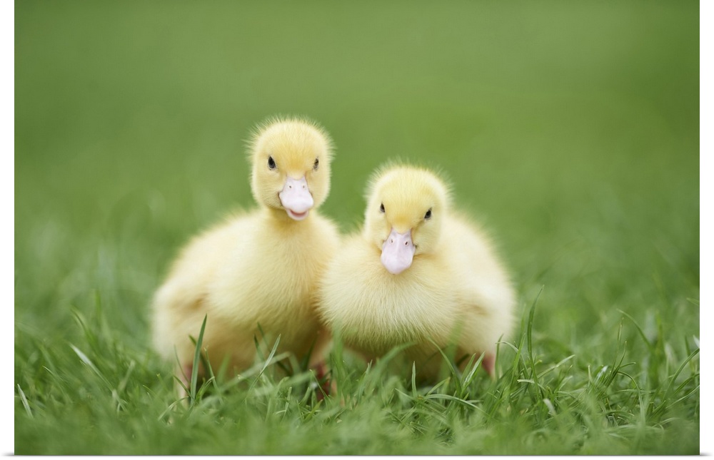 <p>Muscovy Ducklings (Cairina moschata) on Meadow in Spring, Upper Palatinate, Bavaria, Germany</p>