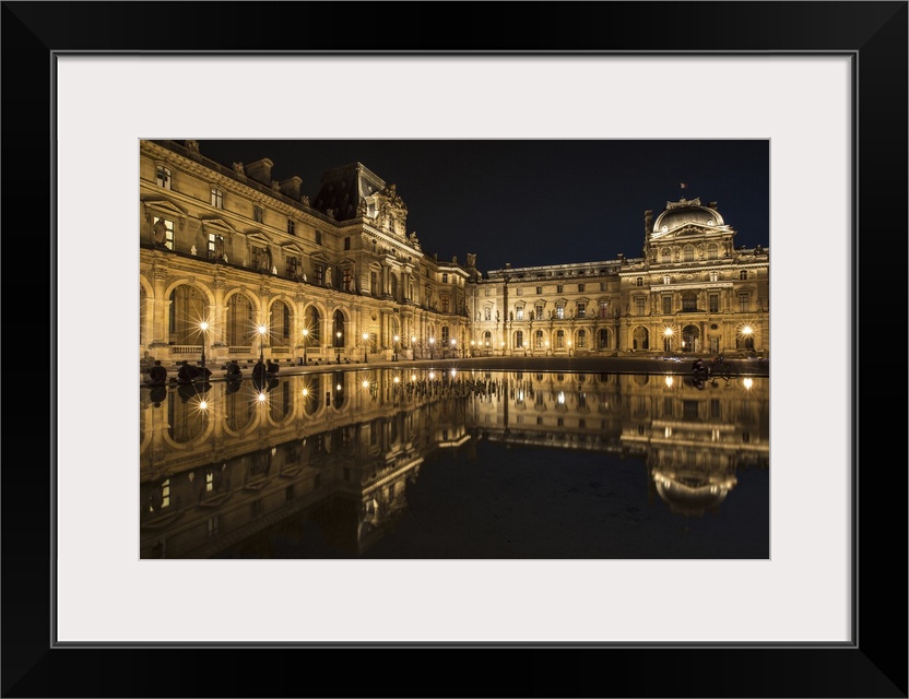 <p>The Louvre Museum reflected in the waters of the fountain.</p>